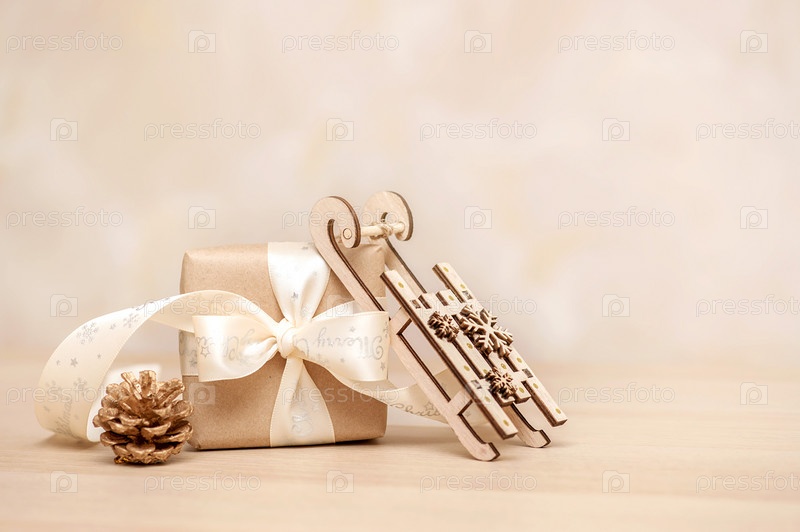 Композиция с забытыми украшениями на деревянном фоне, экологически чистая концепция рождественского праздника