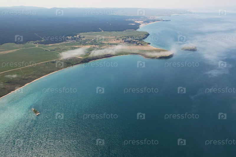 Берег Байкала с воздуха. Красивый пейзаж острова Ольхон в летний день