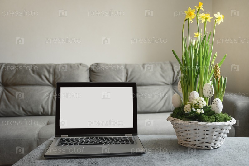 Пасхальная композиция и ноутбук для онлайн-трансляции церковной службы во время карантина