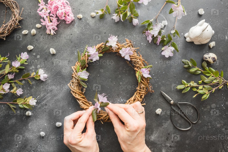 Весенний венок с цветами. Креативная плоская планировка. Вид сверху