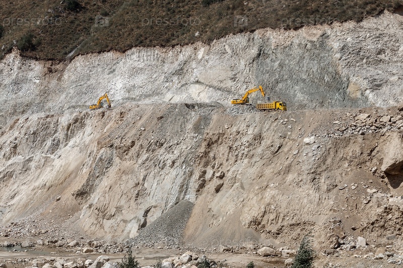 Обработка горного склона при строительстве селезащитной плотины в большом алматинском ущелье