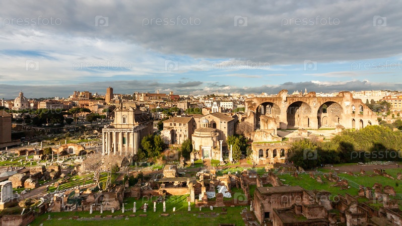 Красивый вид с воздуха на Рим в пасмурную погоду, Европа