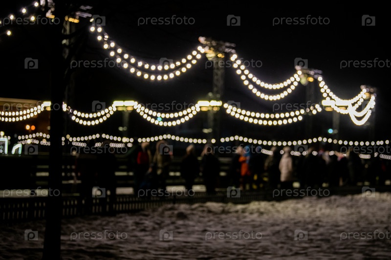 Абстрактный размытый фон с боке красочные круги. Фон городского образа жизни с уличными фонарями и гирляндами