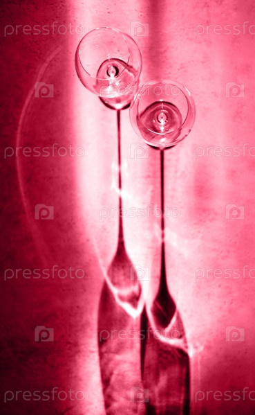 Пустые бокалы с силуэтом на заднем плане с видом сверху темной тени