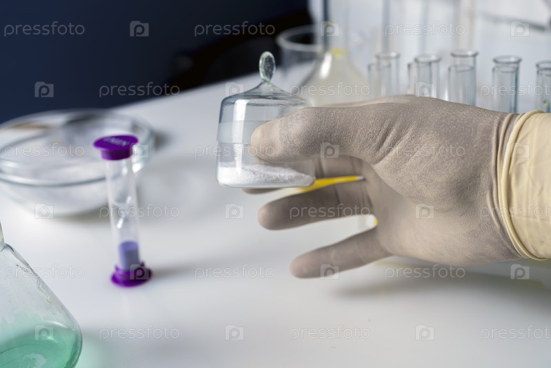 Крупный план руки ученого, работающего с лабораторными образцами пищевых добавок