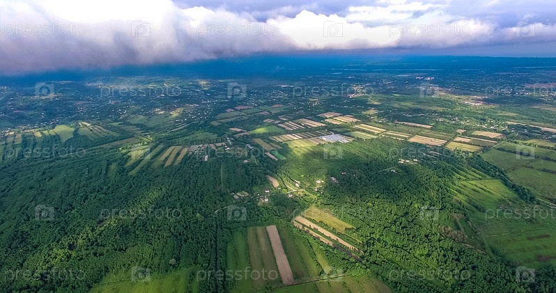 Вид с квадрокоптера на поля и леса