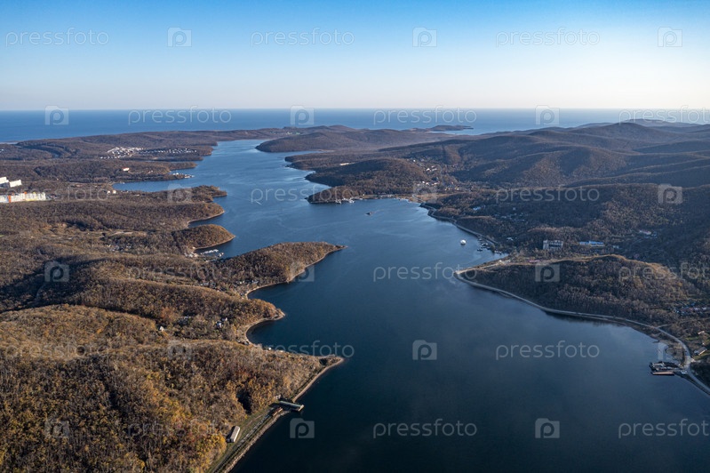 Вид с воздуха на морской пейзаж с видом на остров Русский
