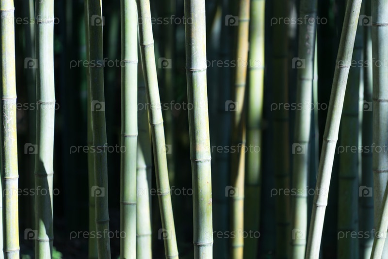 Зеленые стволы бамбука на темном фоне