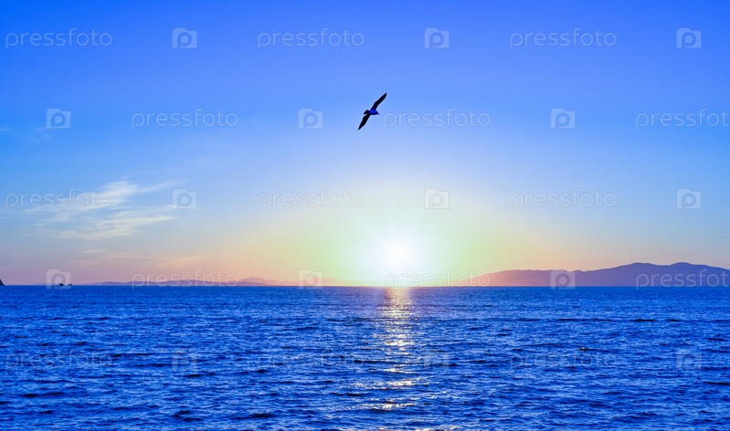 Морской пейзаж с видом на закат над Тихим океаном