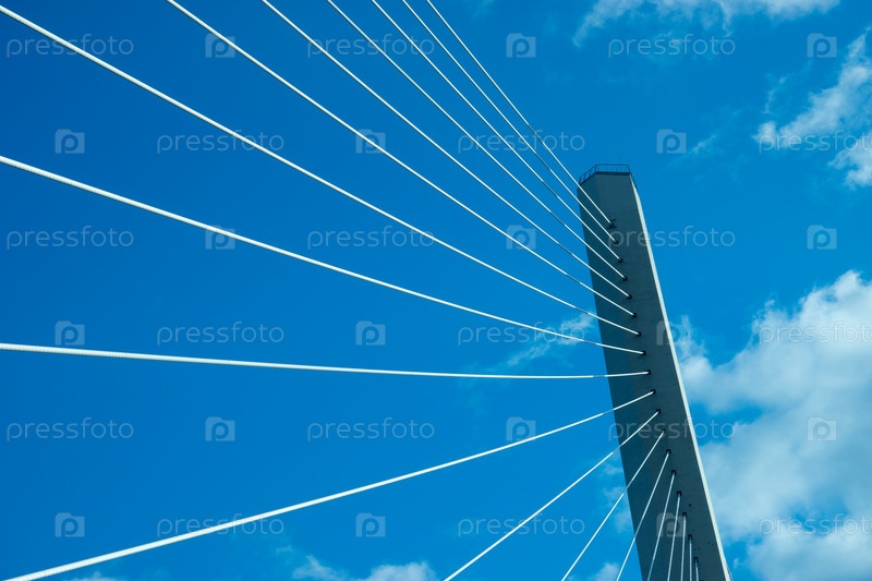 Строительство Золотого моста на фоне голубого неба