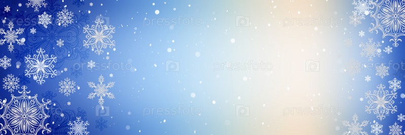 Зимний морозный баннер нарисован кружевными снежинками холодный синий фон, градиент