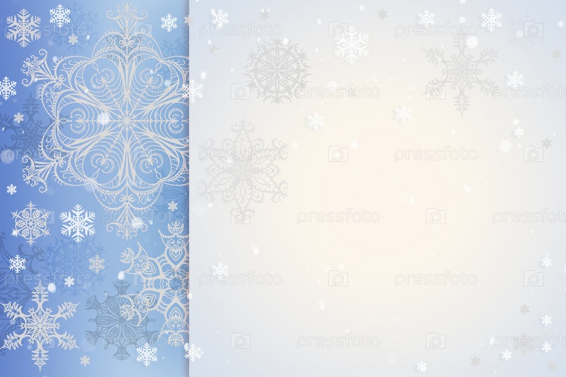 Зимний снежный фон нарисован кружевными снежинками на синем фоне с местом для текста