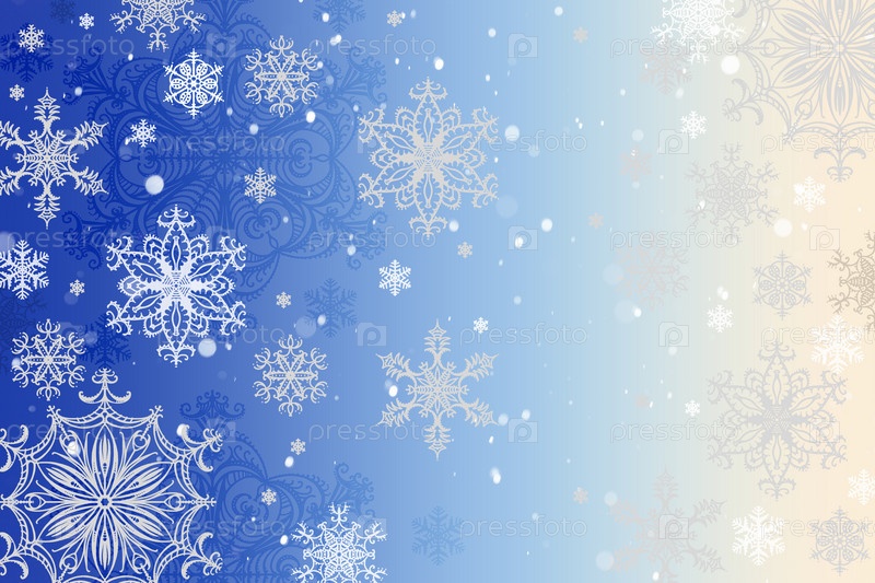 Зимний морозный фон нарисован кружевом снежинки холодный синий фон с градиентом