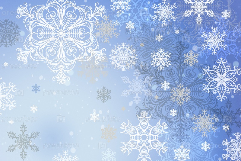 Нежный синий зимний фон с нарисованными снежинками