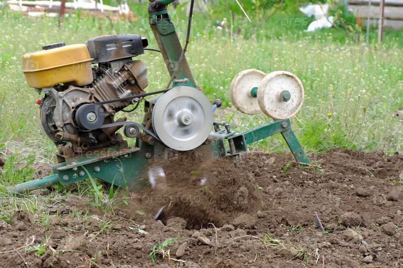 Вспашка участка под садоводство бензиновым культиватором со специальными колесами