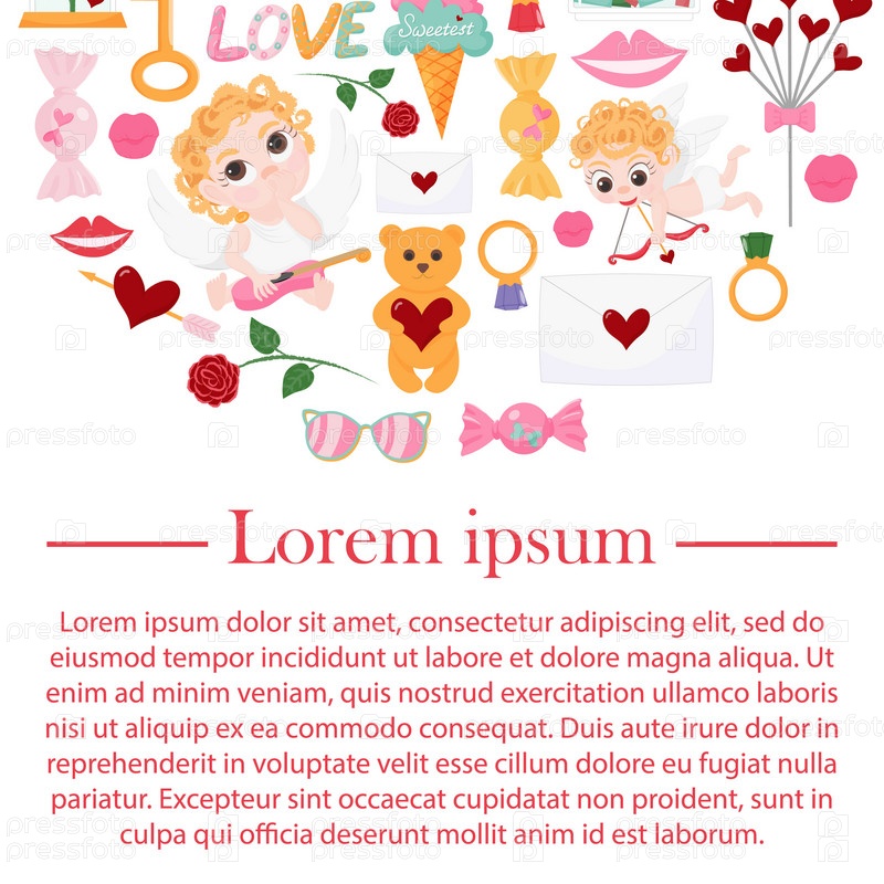 Векторная иллюстрация с мультяшным фоном для свадьбы, дня Святого Валентина. Векторный мультяшный фон на тему влюбленных