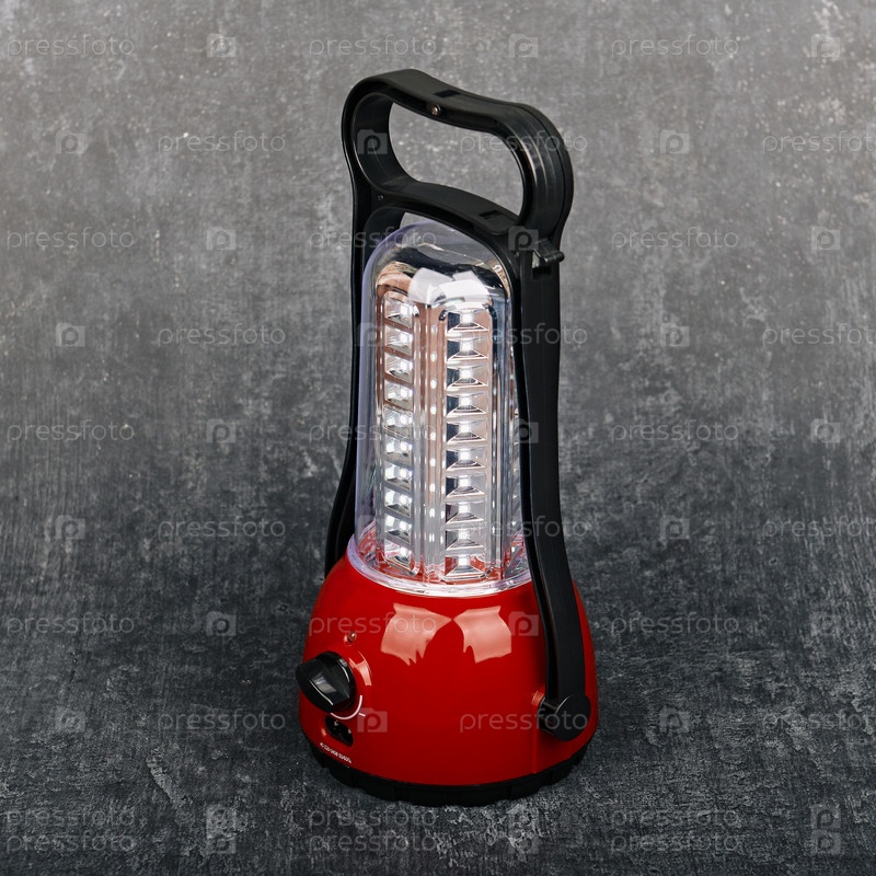 Современный портативный перезаряжаемый светодиодный светильник на сером фоне, малая глубина резкости