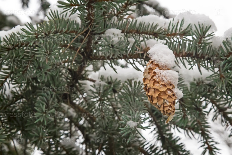 Ветки ели покрыты пушистым белым снегом. Справочная картинка