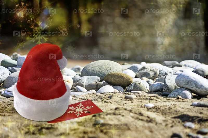 Рождественский пляж Шляпа Санта-Клауса на пляже