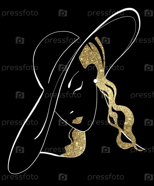 Графический силуэт модницы в большой шляпе. Элегантная роскошная икона. Женская концепция