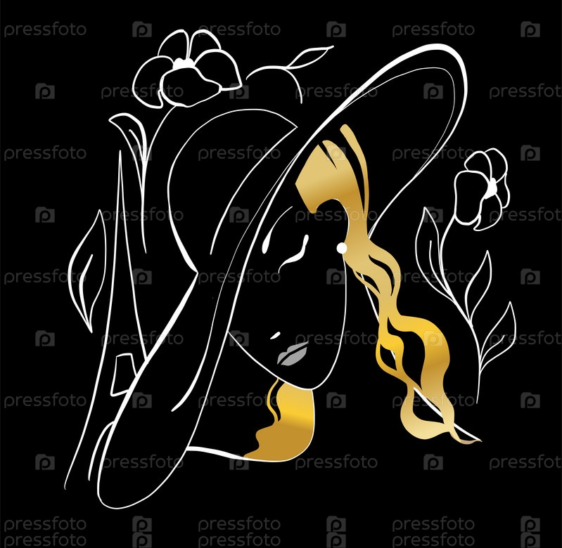 Графический силуэт модницы в большой шляпе. Элегантная роскошная икона. Женская концепция