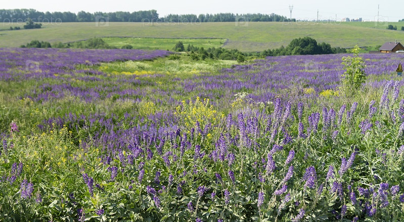 Летний пейзаж с люпином в поле