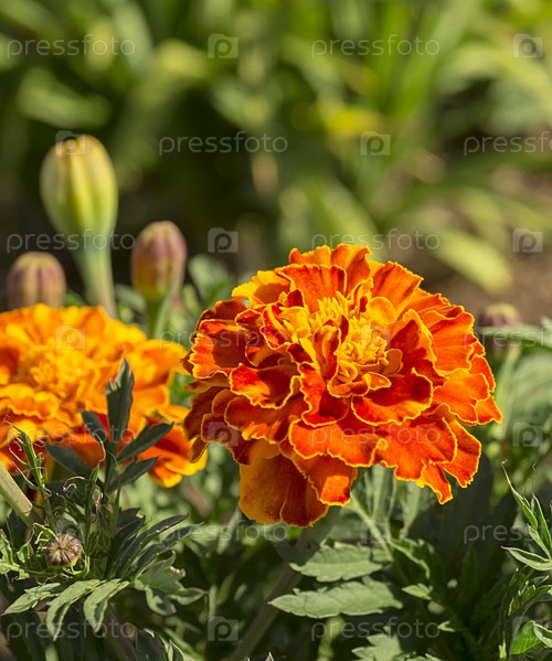 Цветы бархатцы на зеленом фоне