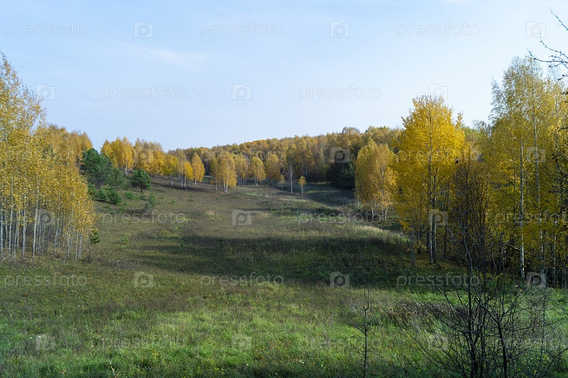 Естественный фон с березой у рощи к осени