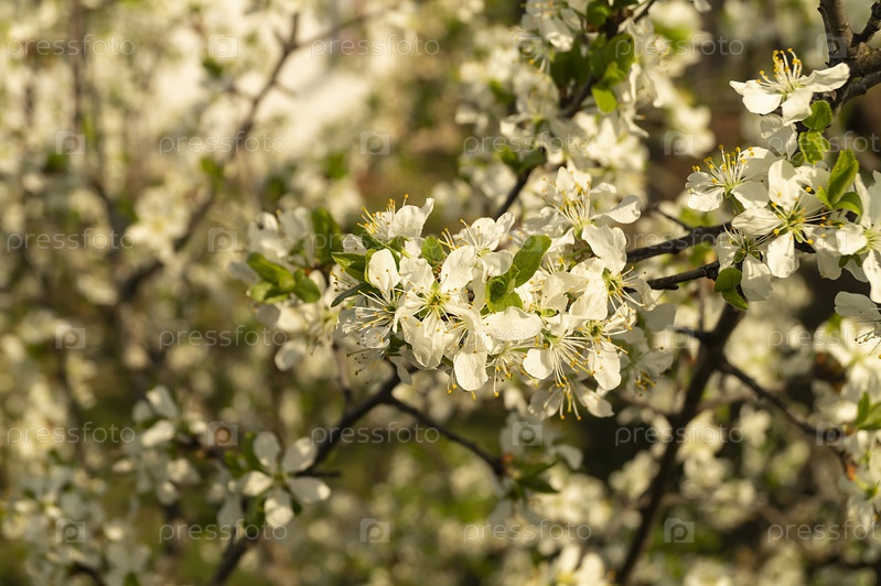 Цветущие выделения в весеннем саду в солнечный день