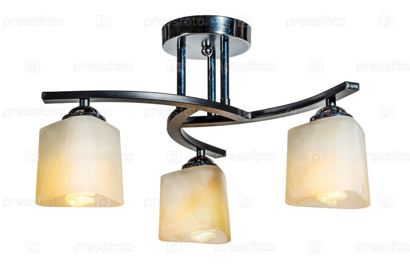 Потолочный светильник с тремя стеклянными плафонами. Изолированные на белом фоне