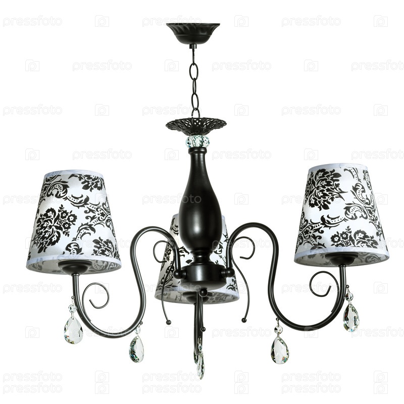 Трехплафонная люстра с черным цветочным узором. Изолированные на белом фоне