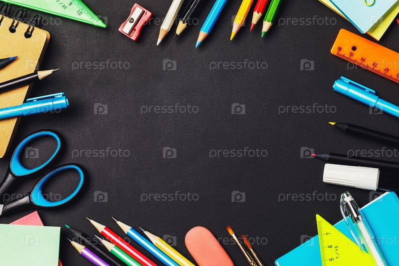 Доска со школьными принадлежностями и местом для копирования посередине, вид сверху