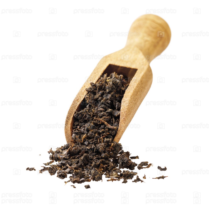 Совок, полный сушеных листьев кипрея, называемый иван-чай, изолированный на белом фоне