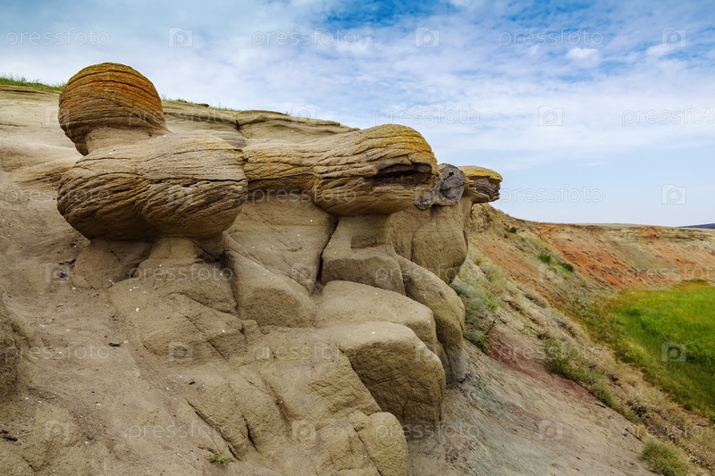 Букобай ярс, продукт ветровой эрозии. Природный ландшафт и геологическая достопримечательность. Соль-Илецкий район Оренбургской области, Россия