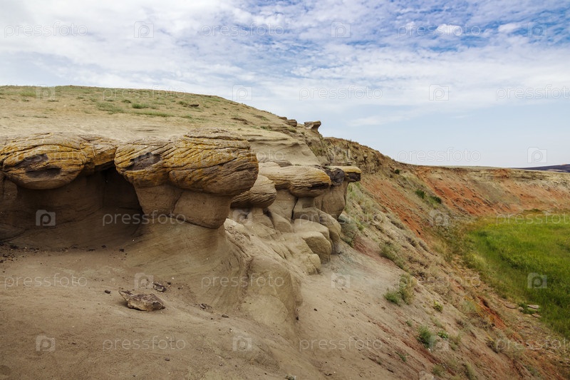 Букобай ярс, продукт ветровой эрозии. Природный ландшафт и геологическая достопримечательность. Соль-Илецкий район Оренбургской области, Россия