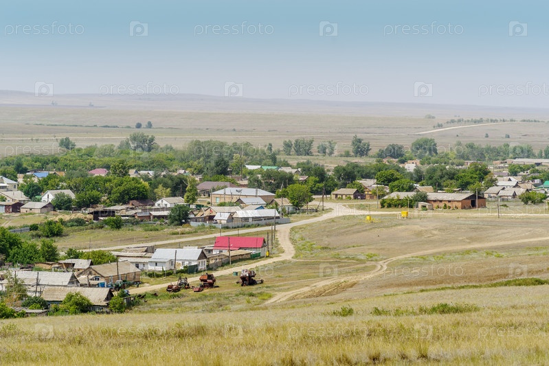 Деревня Михайловка, Соль-Илецкий район, Оренбургская область, Россия - 10 августа 2021 г.: Степная деревня
