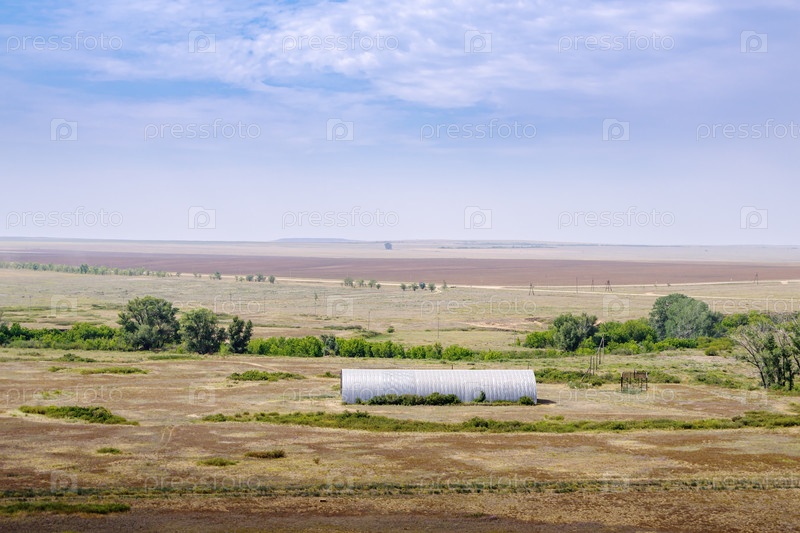 Летний овчарня на степном пастбище. Снимок сделан в России, в Оренбургской области
