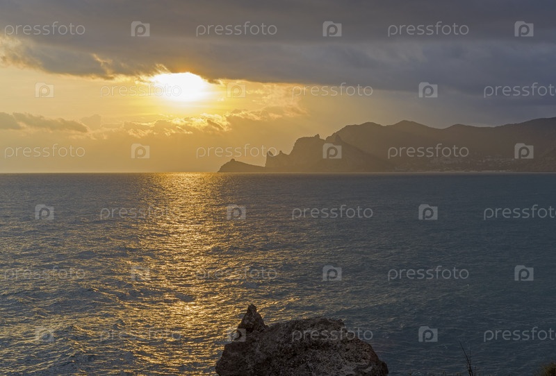 Закат солнца над Черным морем. Вид с мыса Алчак, Судак, Крым