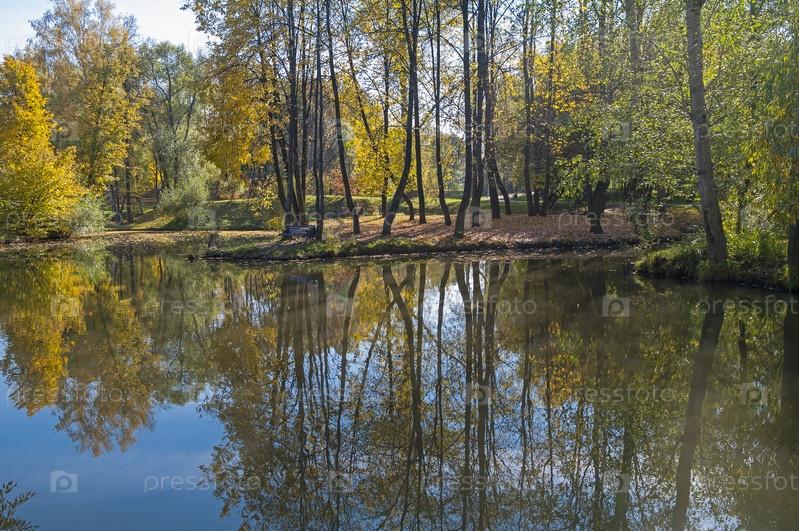Городской пруд в солнечный осенний день. Воронцовский парк, Москва