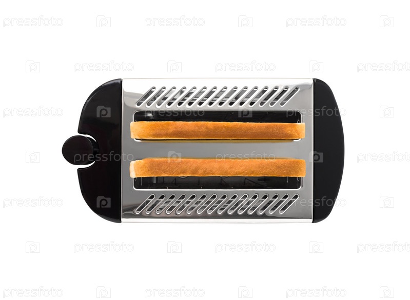 Вид сверху на тостер с ломтиками хлеба на белом фоне