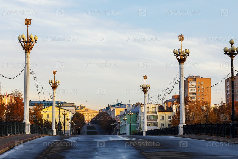 Утренний пейзаж: вид с Александровского моста на улицу Ленина, Россия, город Орел
