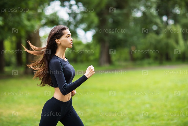 Девушка занимается утренней пробежкой на свежем воздухе. Концепция здорового образа жизни