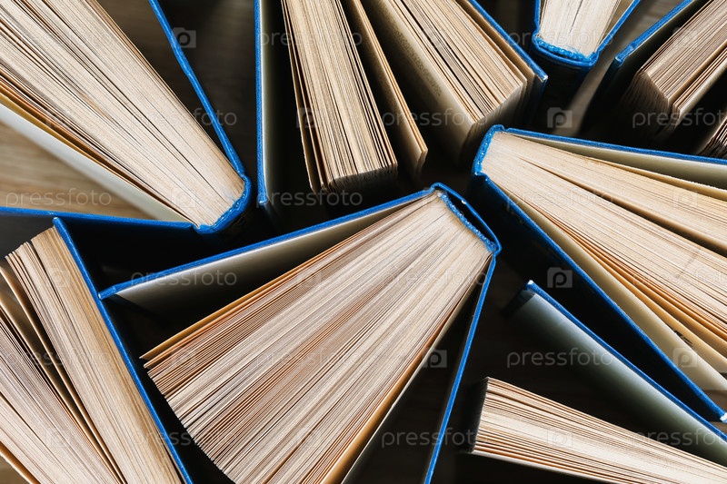Текстура из открытых книг, вид сверху. Абстрактный фон