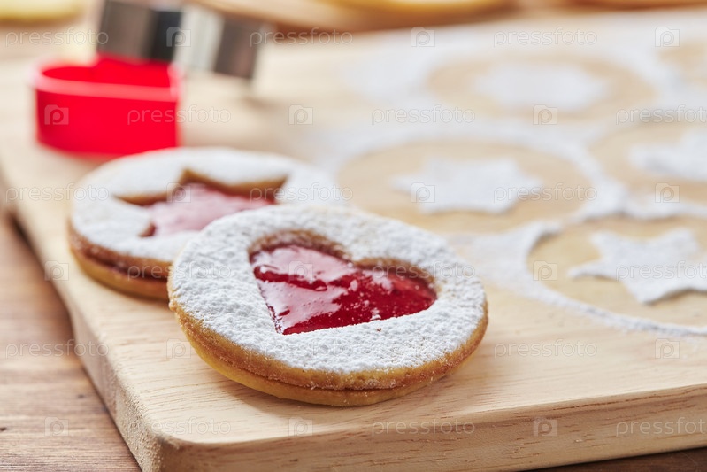 Классический рождественский печенье Linzer с малиновым или клубничным джемом