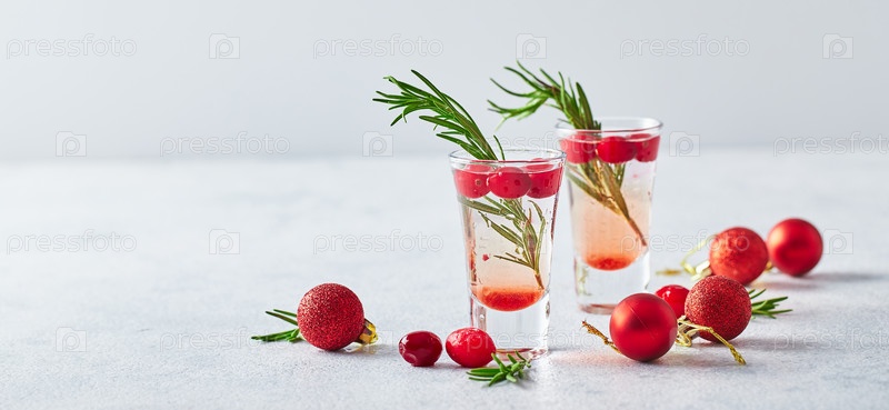 Алкогольный коктейль или безалкогольный коктейль с водкой и клюквой в кадрах с еловыми ветками на рождество