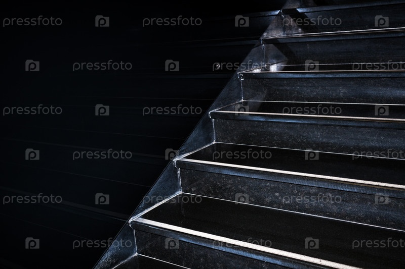 Черная гранитная лестница, идущая по диагонали вверх, отражается в черной стене с копировальным пространством