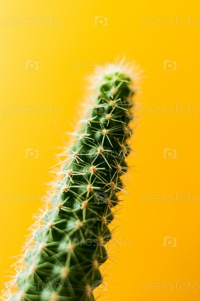 Зеленый длинный кактус на модном ярком пробивном пастельно-желтом фоне