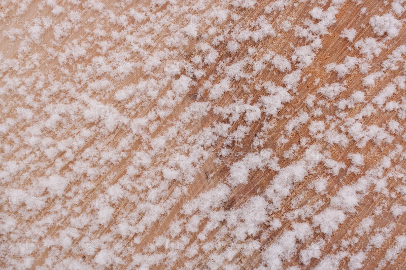 Крупный план диагонального рисунка волокон свежеспиленной древесины, покрытой пушистым свежим снегом и копировальным пространством