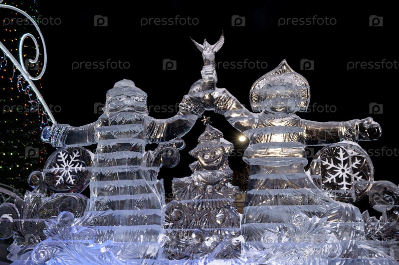 Екатеринбург, Россия - 15 января 2017 года: Дед Мороз и Снегурочка изо льда на площади 1905 года