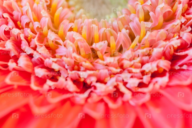 Крупный план середины цветка розовой герберы. Размытый фон с выборочным фокусом